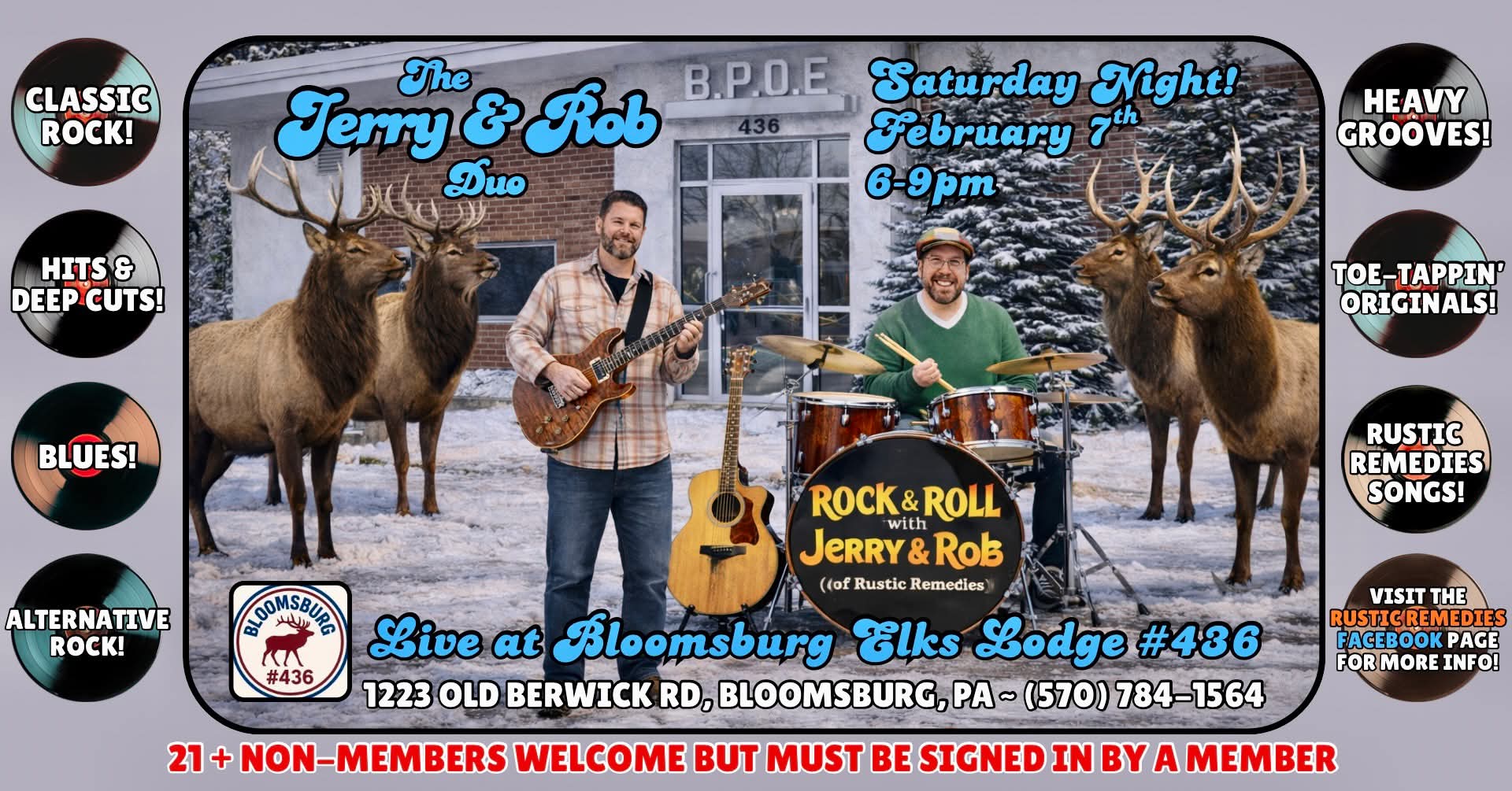 Live Music at Bloomsburg Elks Lodge #436!The Jerry & Rob Duo (from Rustic Remedies) Saturday, February 7th, 2026 6:00 PM – 9:00 PM Bloomsburg Elks Lodge #436 21+ | Members Club Non-members welcome but must […] |