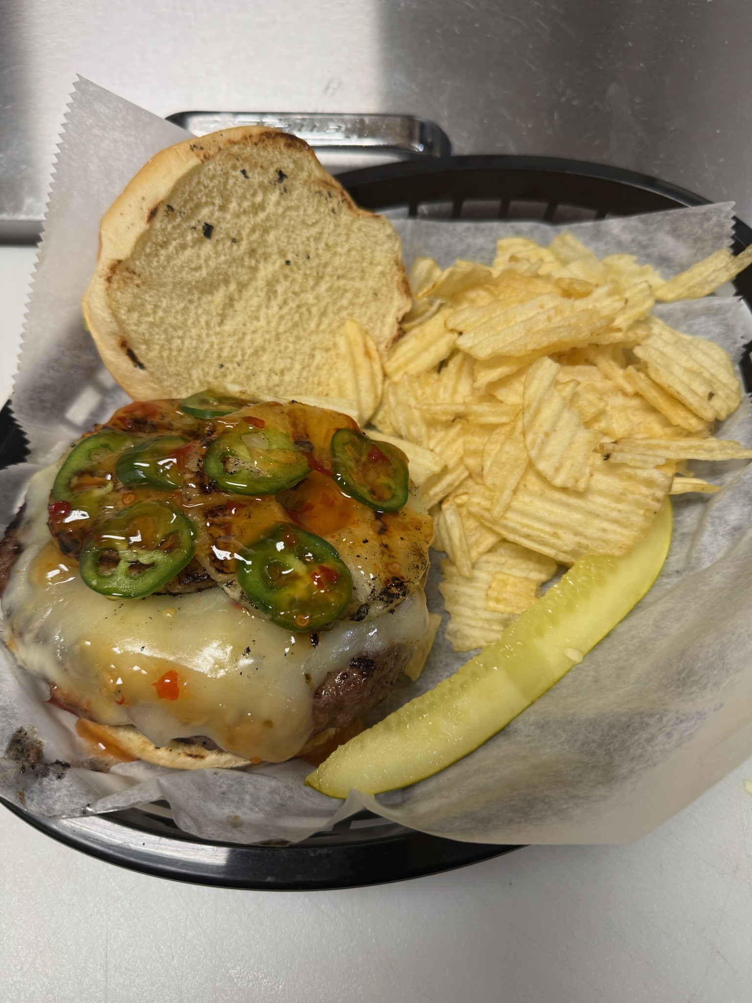 LUNCH - THURSDAY 1/29/26 - BURGERS!!!! 11 AM TO 2 PM BURGER DAY! Fiery Hawaiian , Bacon Cheddar, and the California Burger w/ Lettuce, Tomato, Onion and Mayo |
