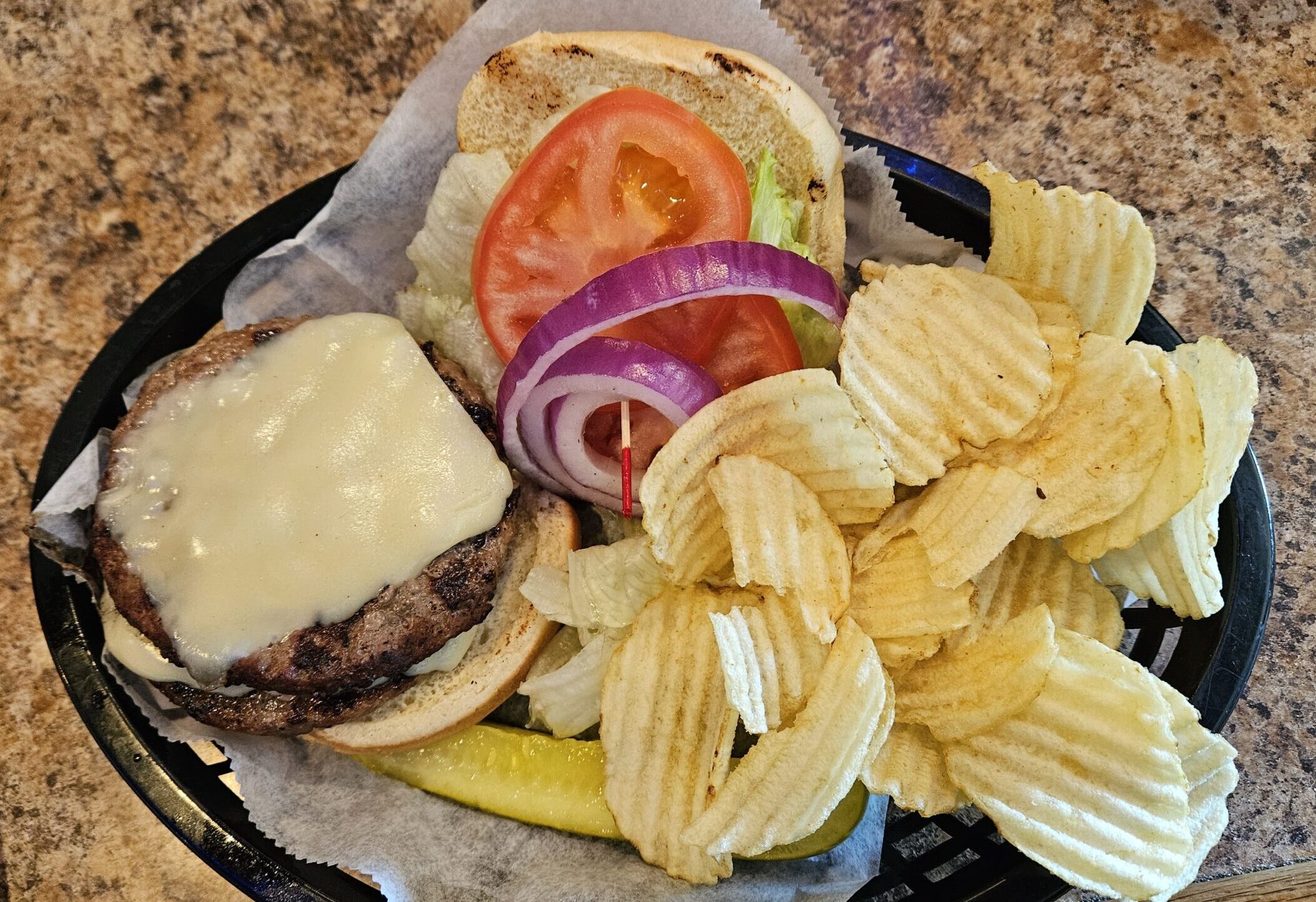 LUNCH - THURSDAY 2/5/2026 BURGERS! + Build UR Own + Bacon Double Stack w/ Fried Onions & Pickles Burger + Patty Melt Burger + All American Burger |