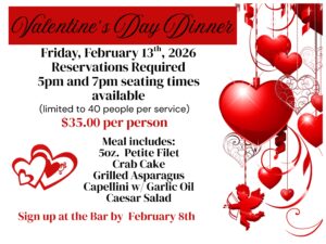 VALENTINE’S DINNER – FEBRUARY 13th (Friday)